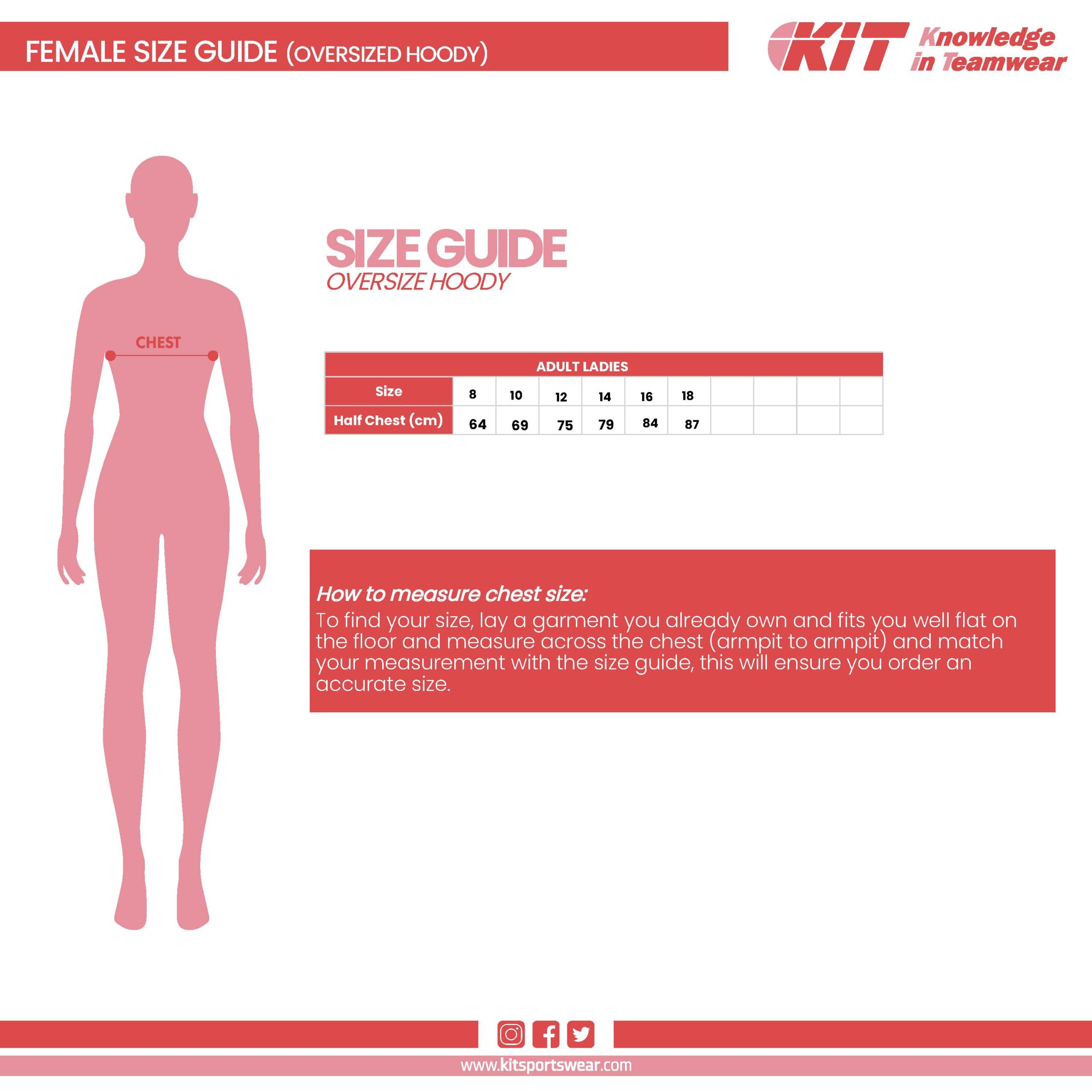 | Ladies Over Sized Hoody | Ladies – 8, Ladies – 10, Ladies – 12, Ladies – 14, Ladies – 16, Ladies – 18, Ladies – 20, Ladies – 22, Ladies – 24 |